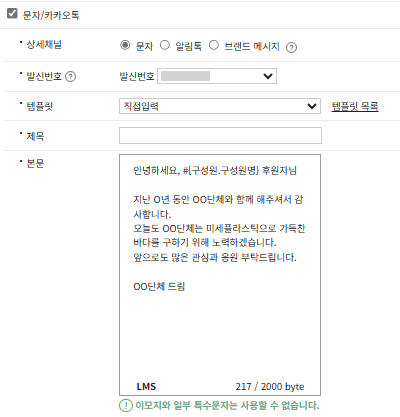 - 약정일 월일(mm-dd) : 약정일과 같은 날짜에 메시지를 발송합니다.