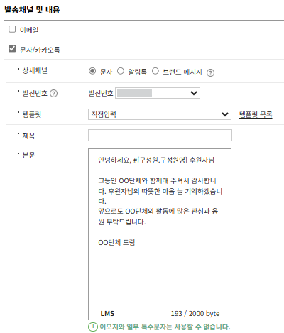 정기후원을 종료할 경우, 자동메시지를 발송할 수 있습니다.