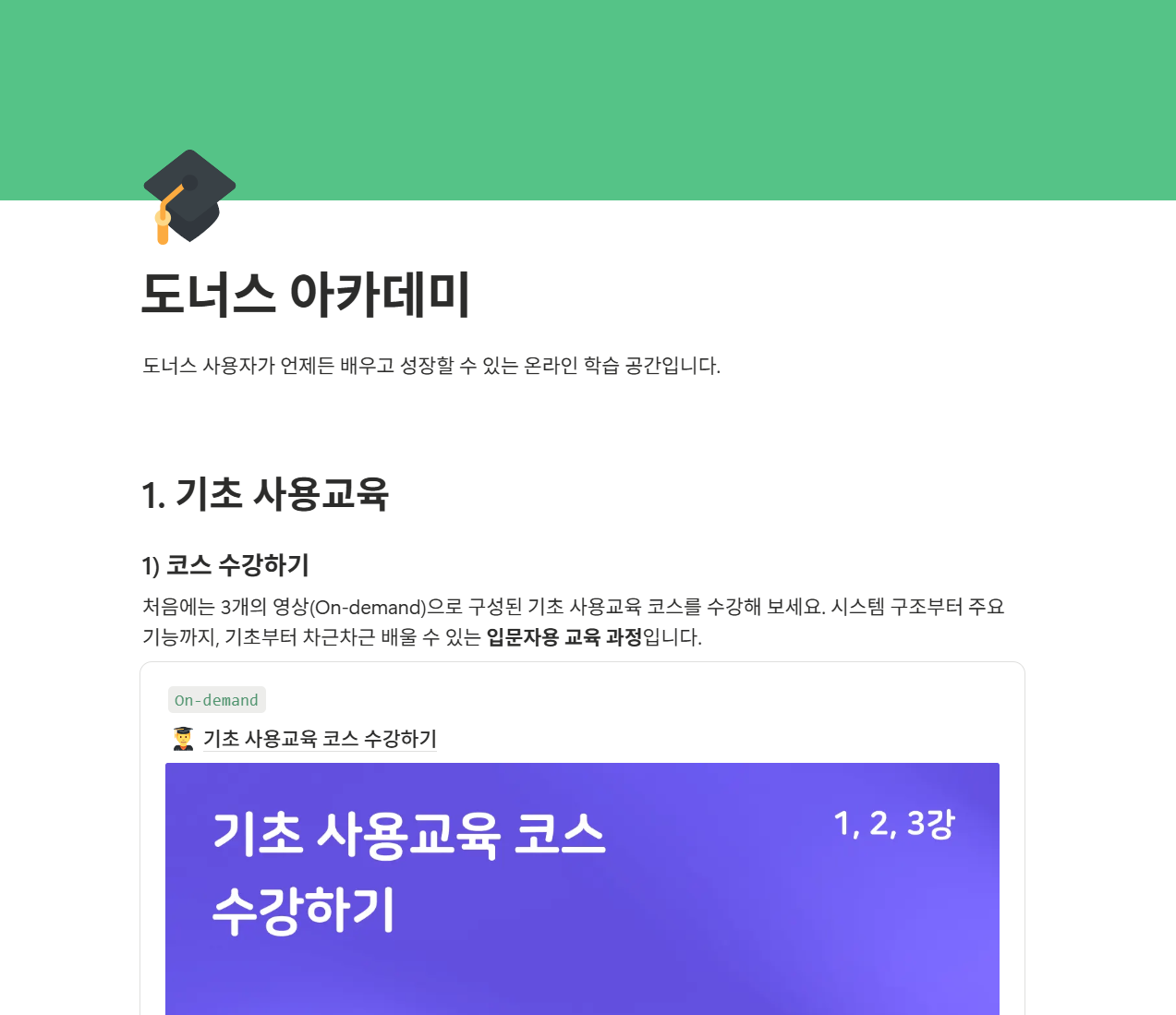 - 도너스 아카데미에서 내게 필요한 교육 영상을 골라 시청하실 수 있습니다.